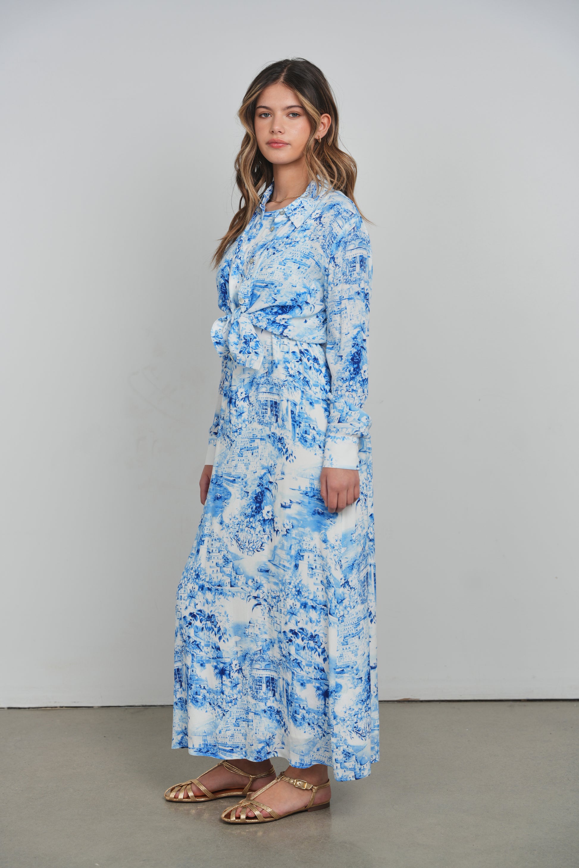 POINT GEORGETTE COLUMN DRESS