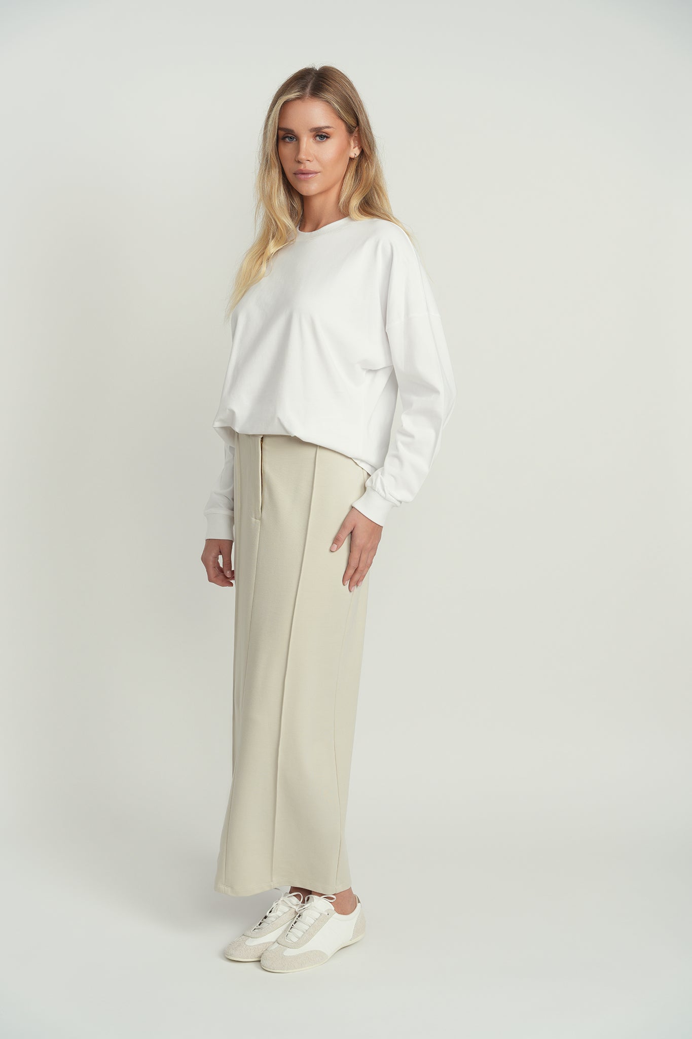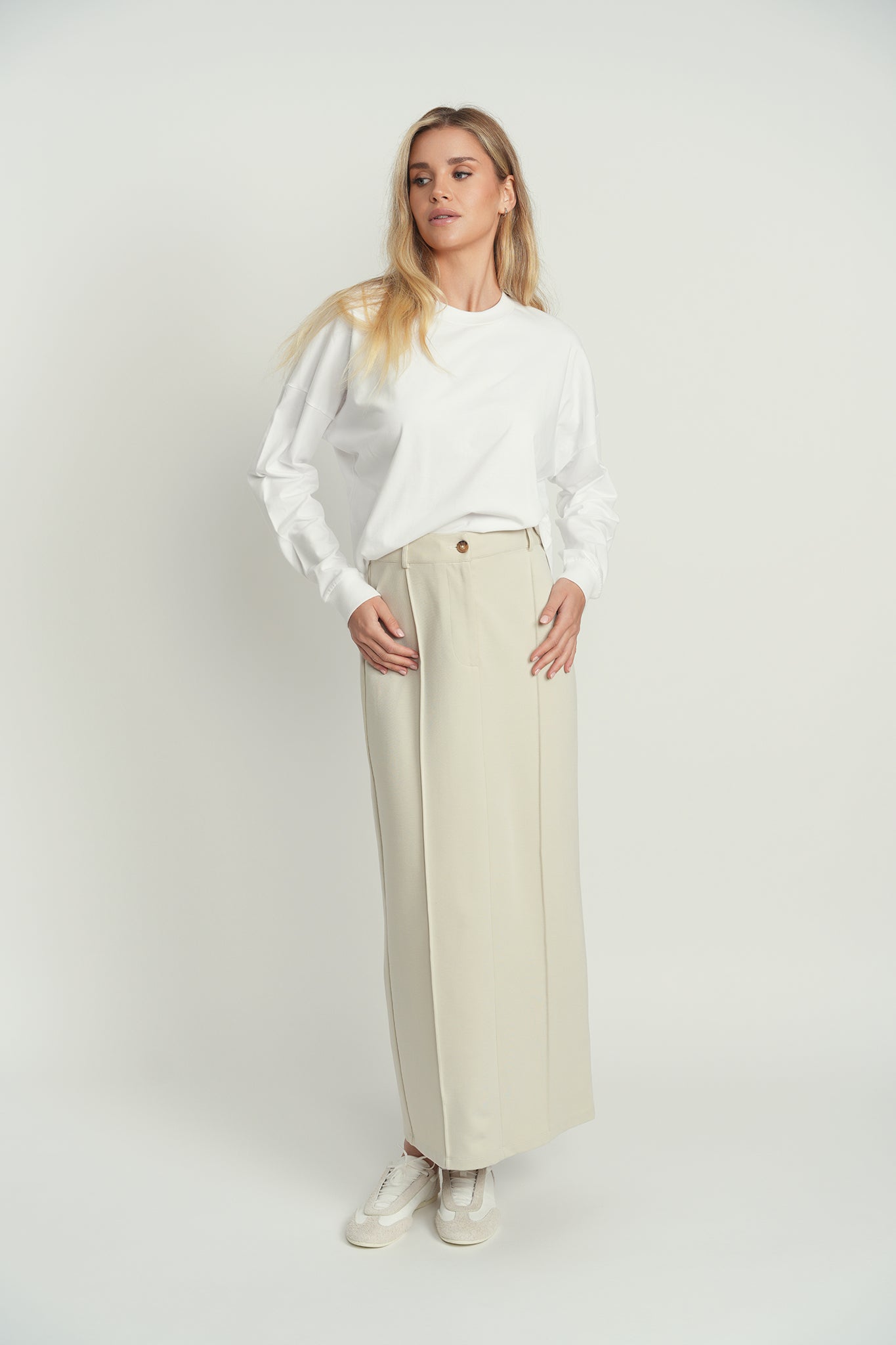 Simple, stunning—this tailored skirt is your go-to staple for everything. Designed with just the right amount of structure and coziness, it takes you from long-hour weekdays to cocktails by the setting sun—and every moment in between.